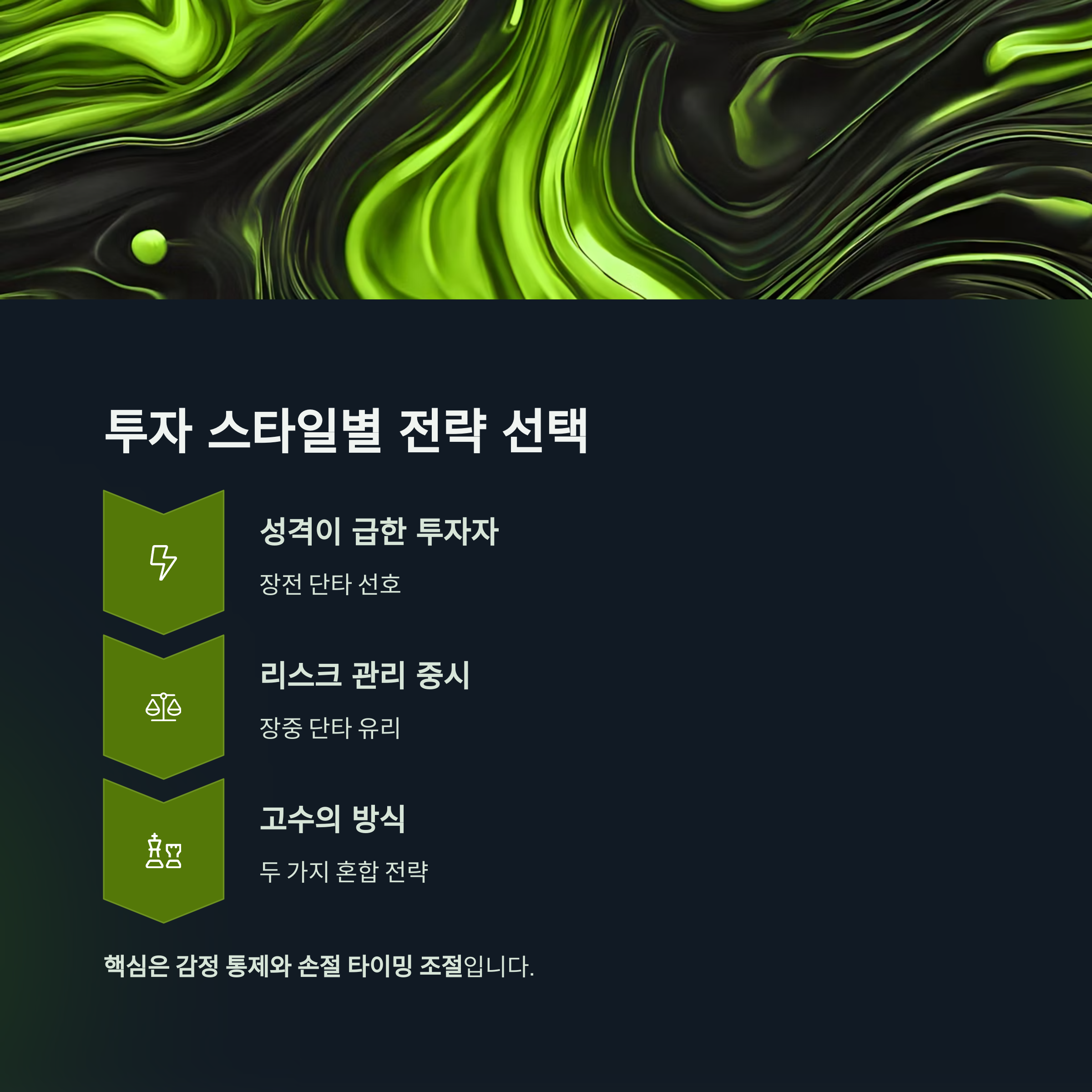 성격이 급하고 단기 수익률 극대화를 노린다면 장전 단타가 더 맞을 수 있습니다.