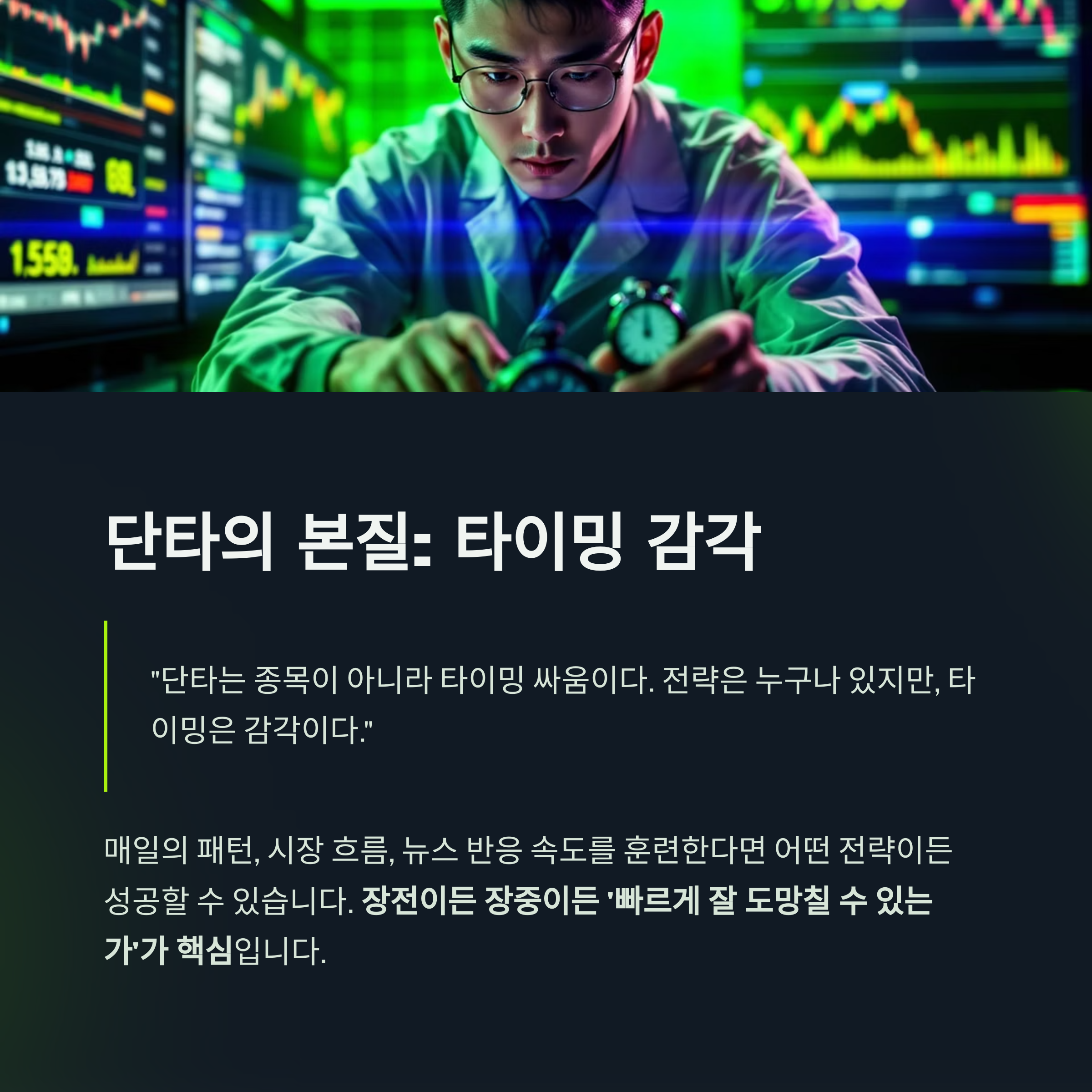 "단타는 종목이 아니라 타이밍 싸움이다. 전략은 누구나 있지만, 타이밍은 감각이다."