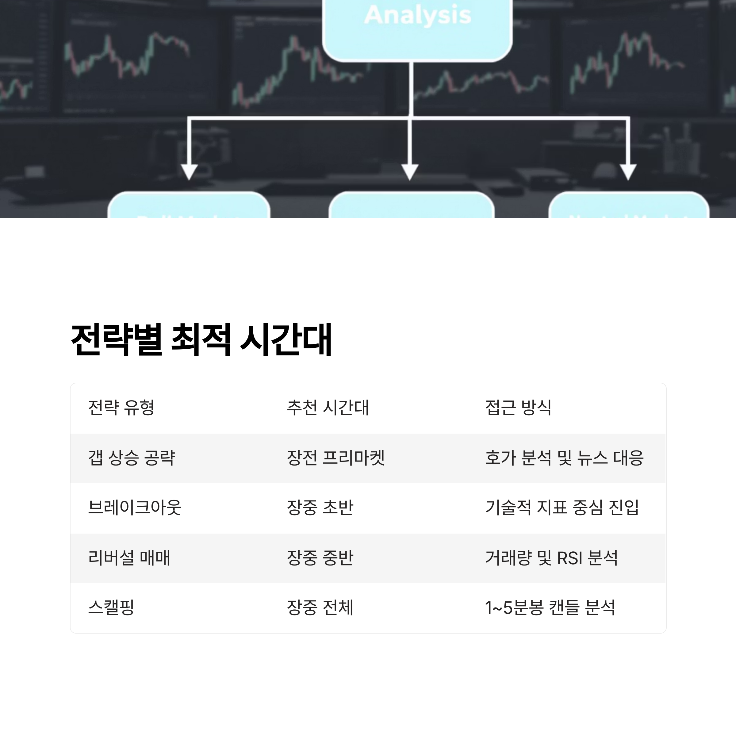 | 브레이크아웃 | 장중 초반 | 기술적 지표 중심 진입 |