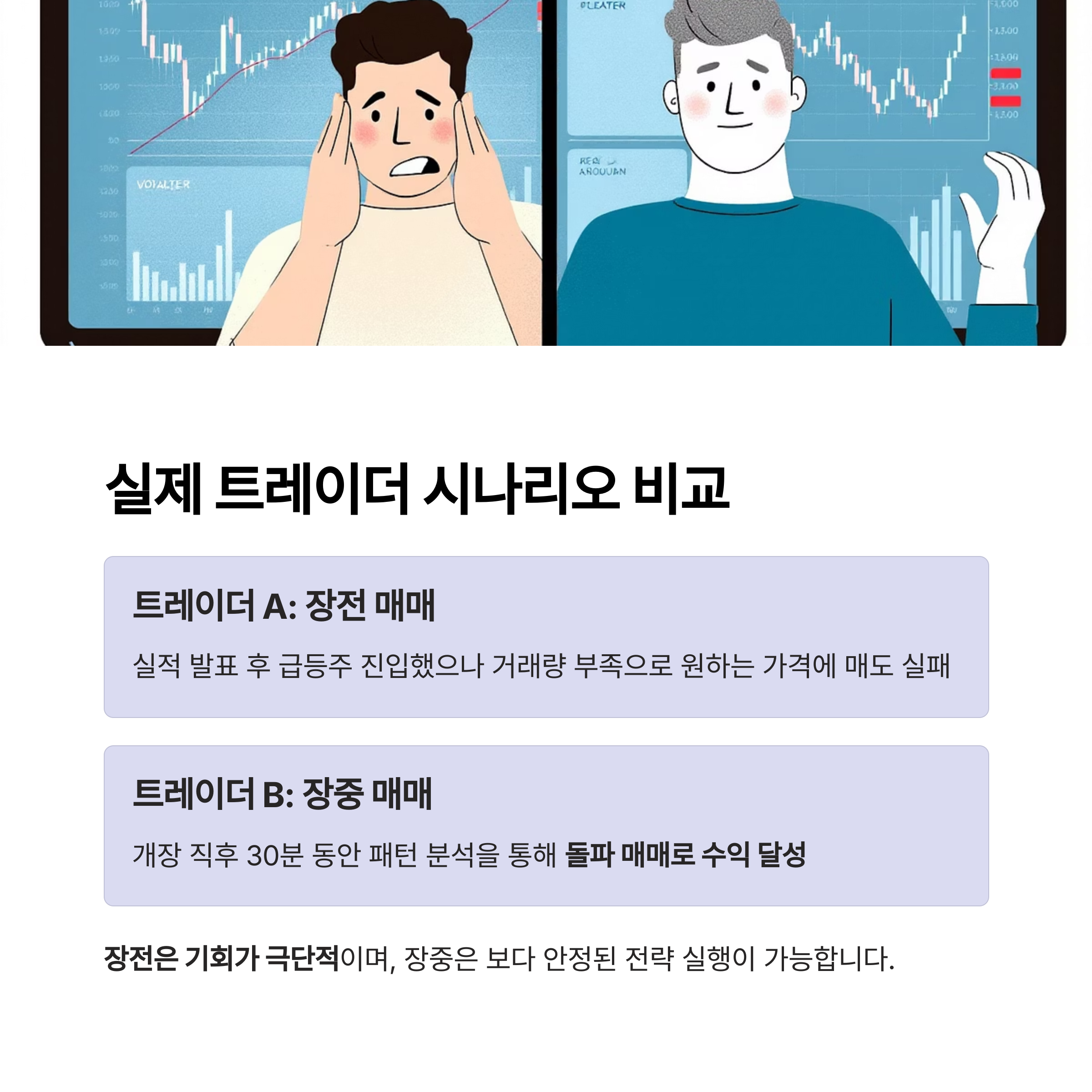 | 장전 매매 vs 장중 단타, 수익 극대화를 위한 전략 선택법 (0) | 2025.05.07 |