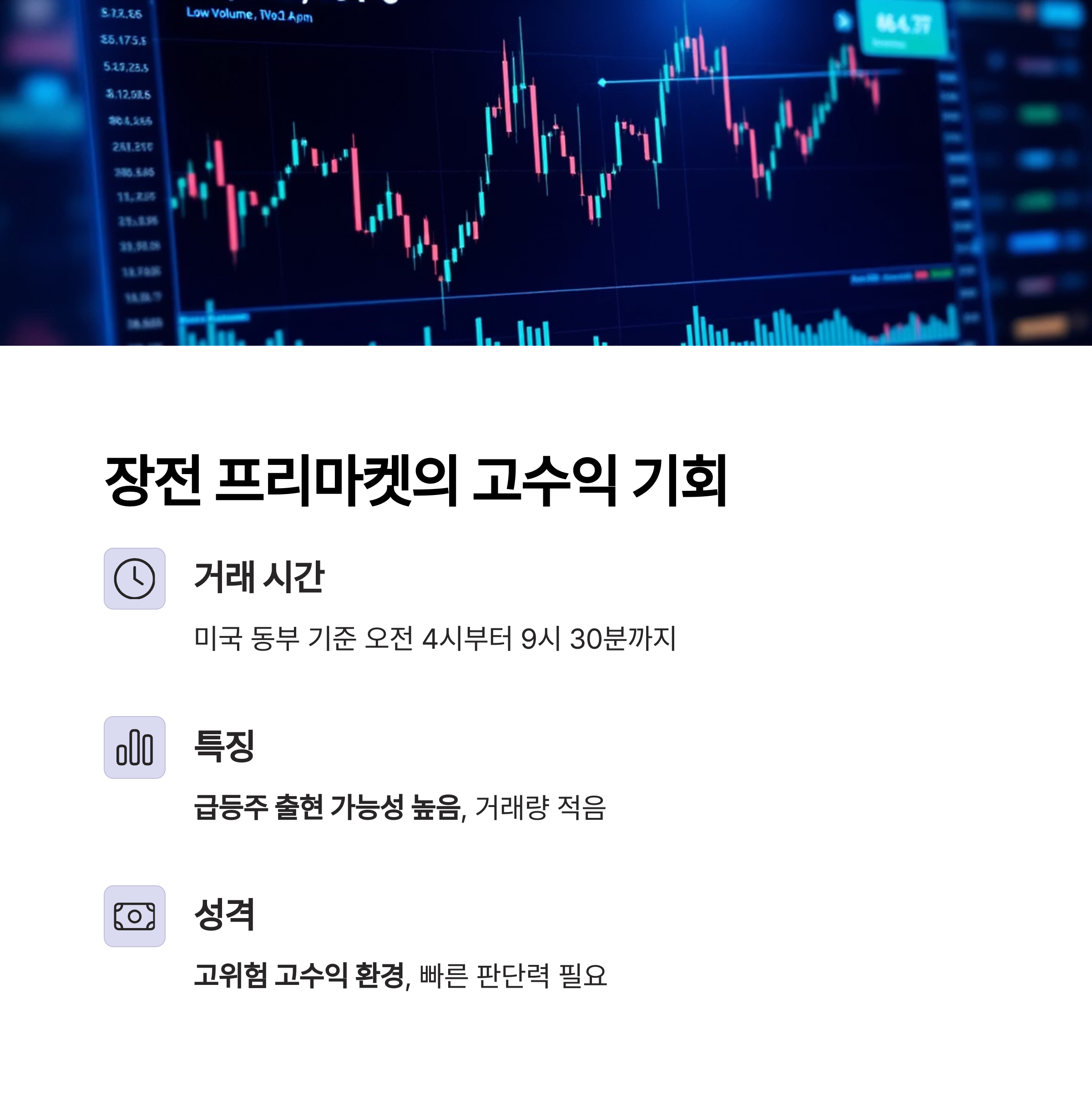 특히 장전(프리마켓)과 장중 트레이딩의 차이점을 정확히 이해하고,