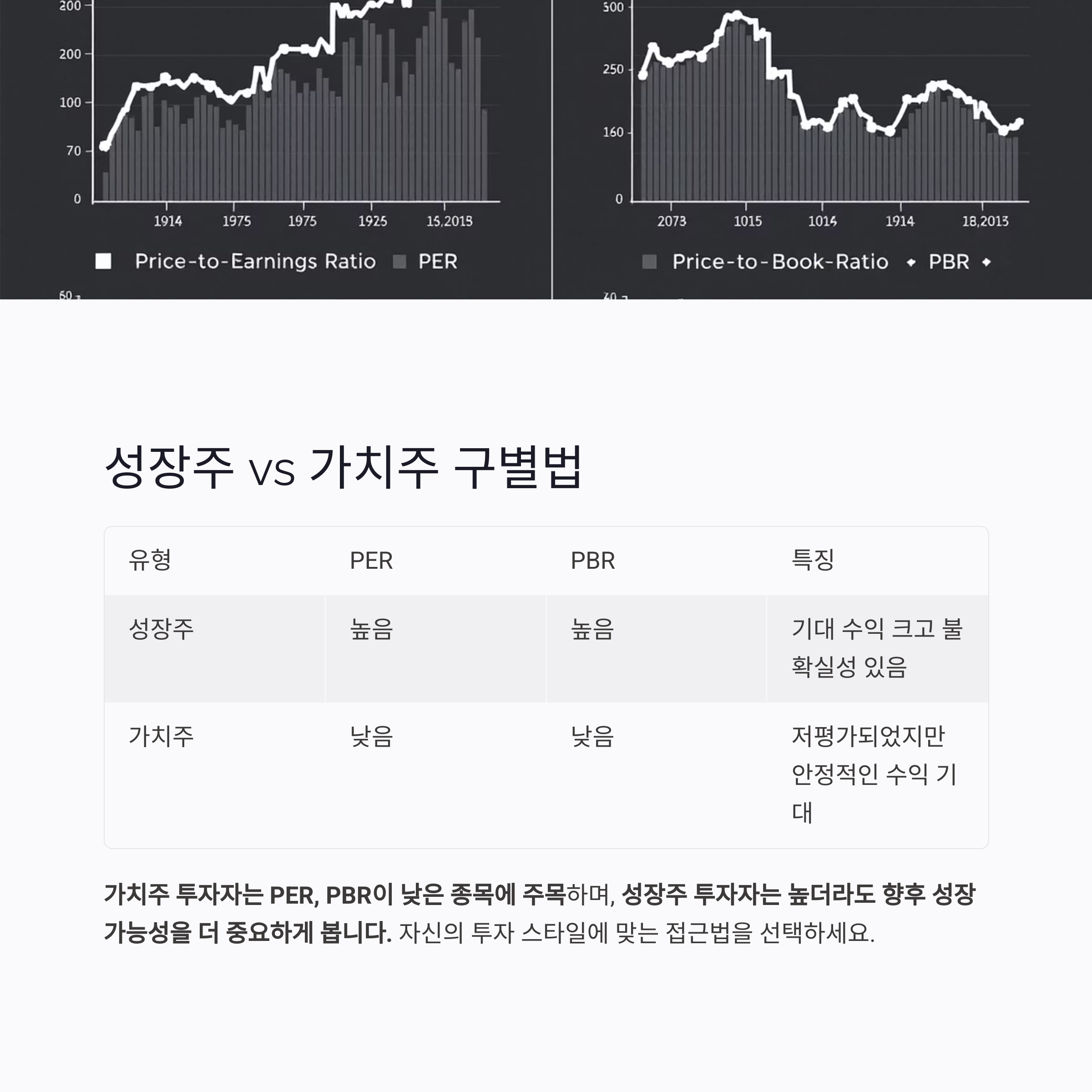 PER과 PBR은 성장주와 가치주를 구별하는 데도 활용됩니다.