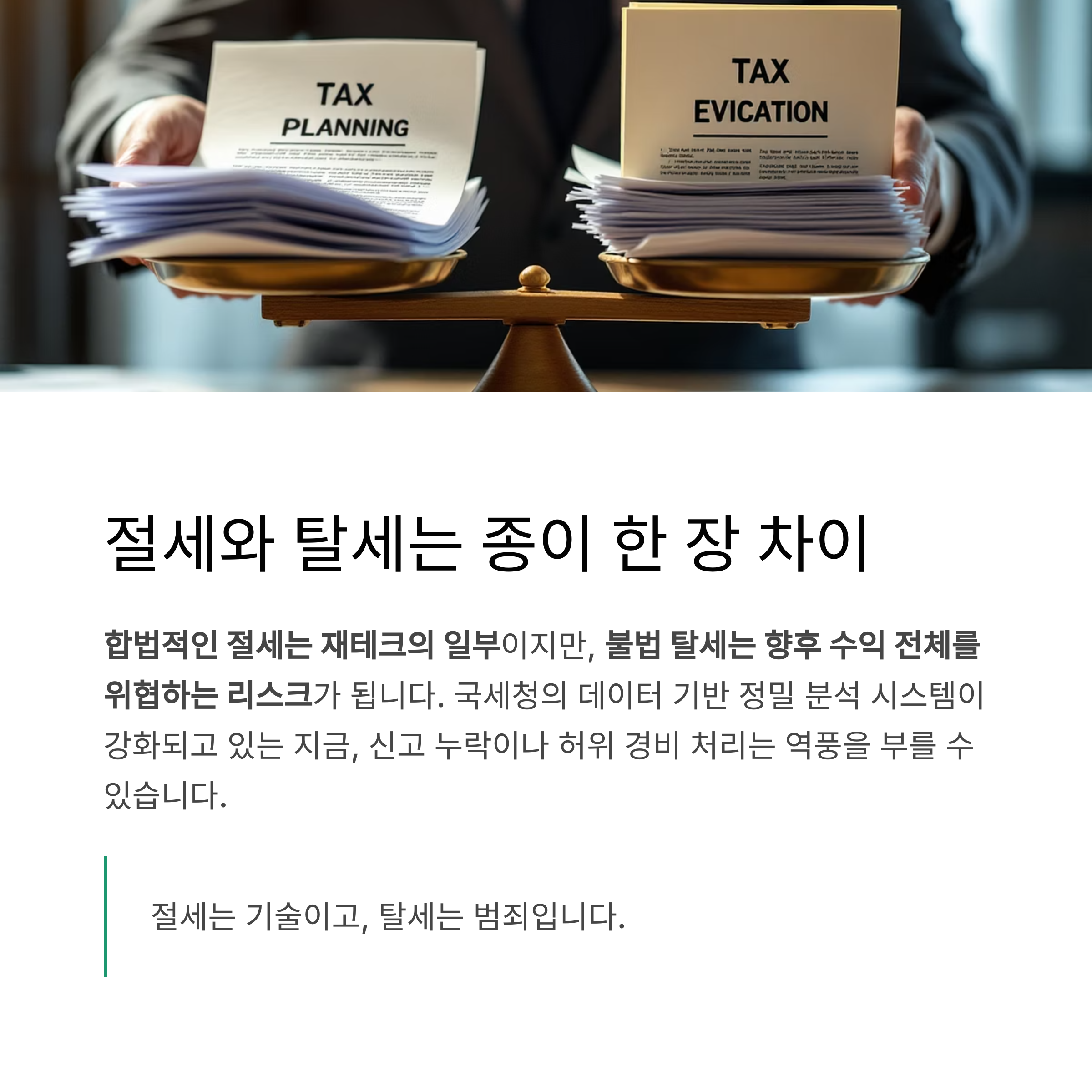 불법 탈세는 향후 수익 전체를 위협하는 리스크가 될 수 있습니다.
