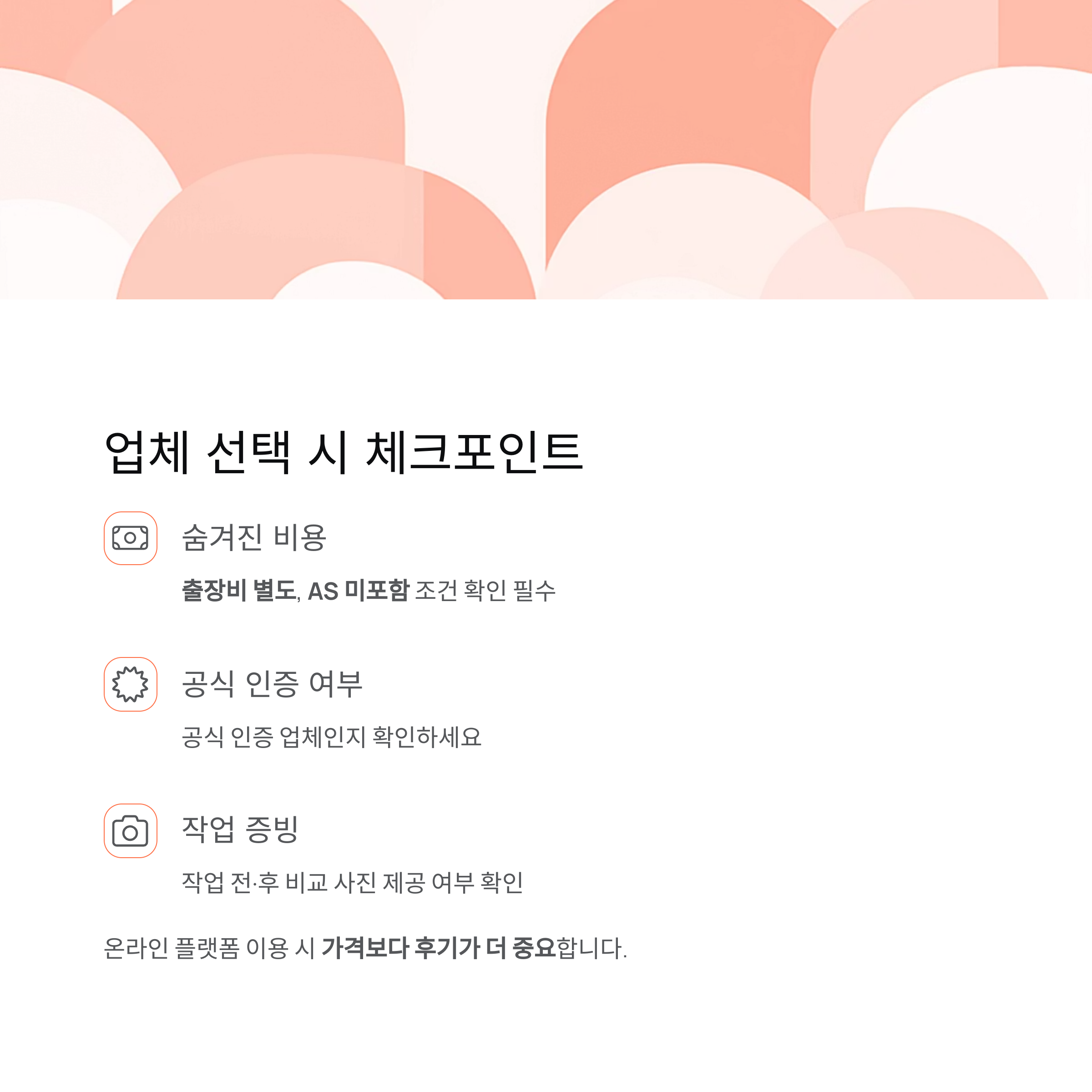 업체 선택 시, 출장비·AS 조건 꼼꼼히 체크