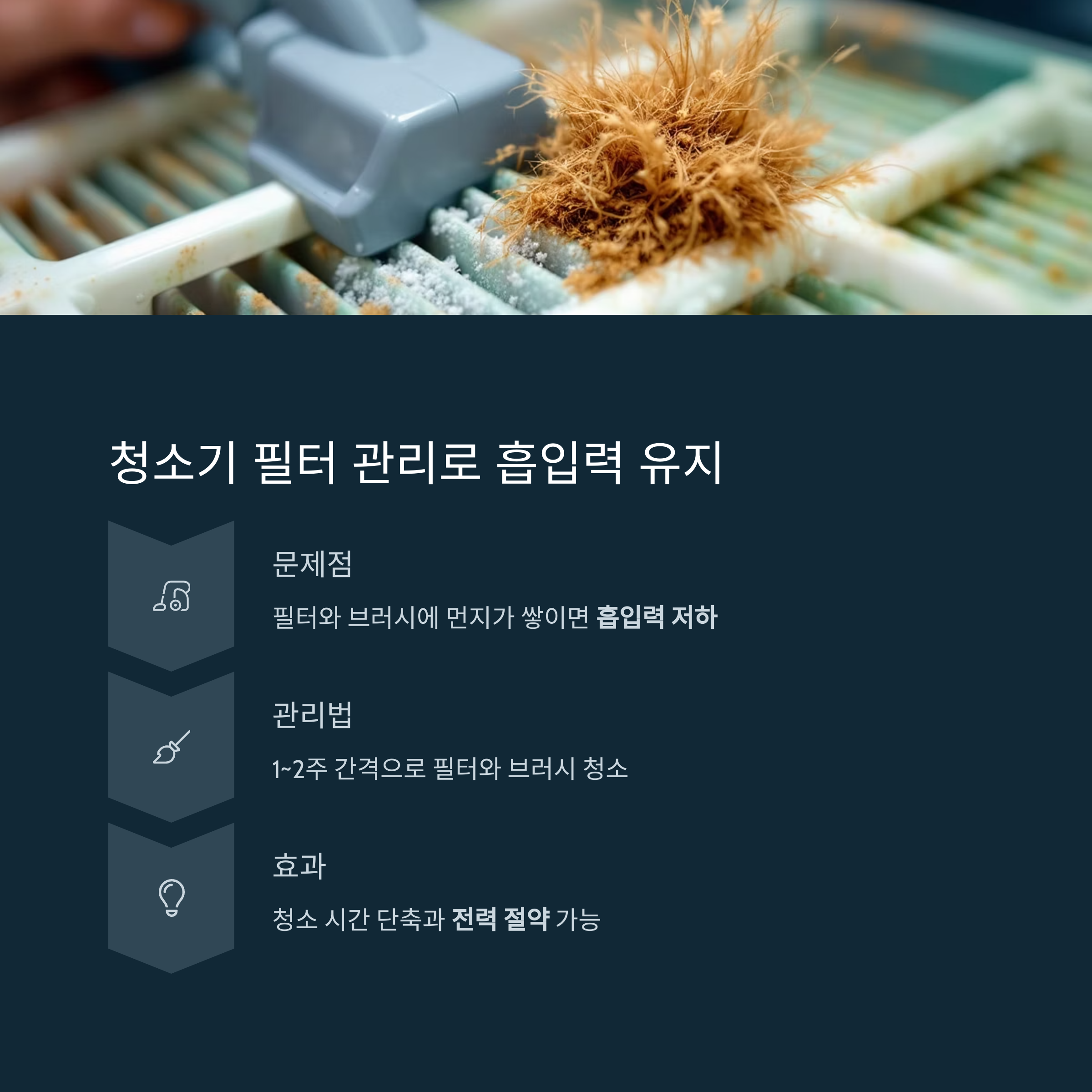 청소기 필터와 브러시 관리도 놓치지 마세요