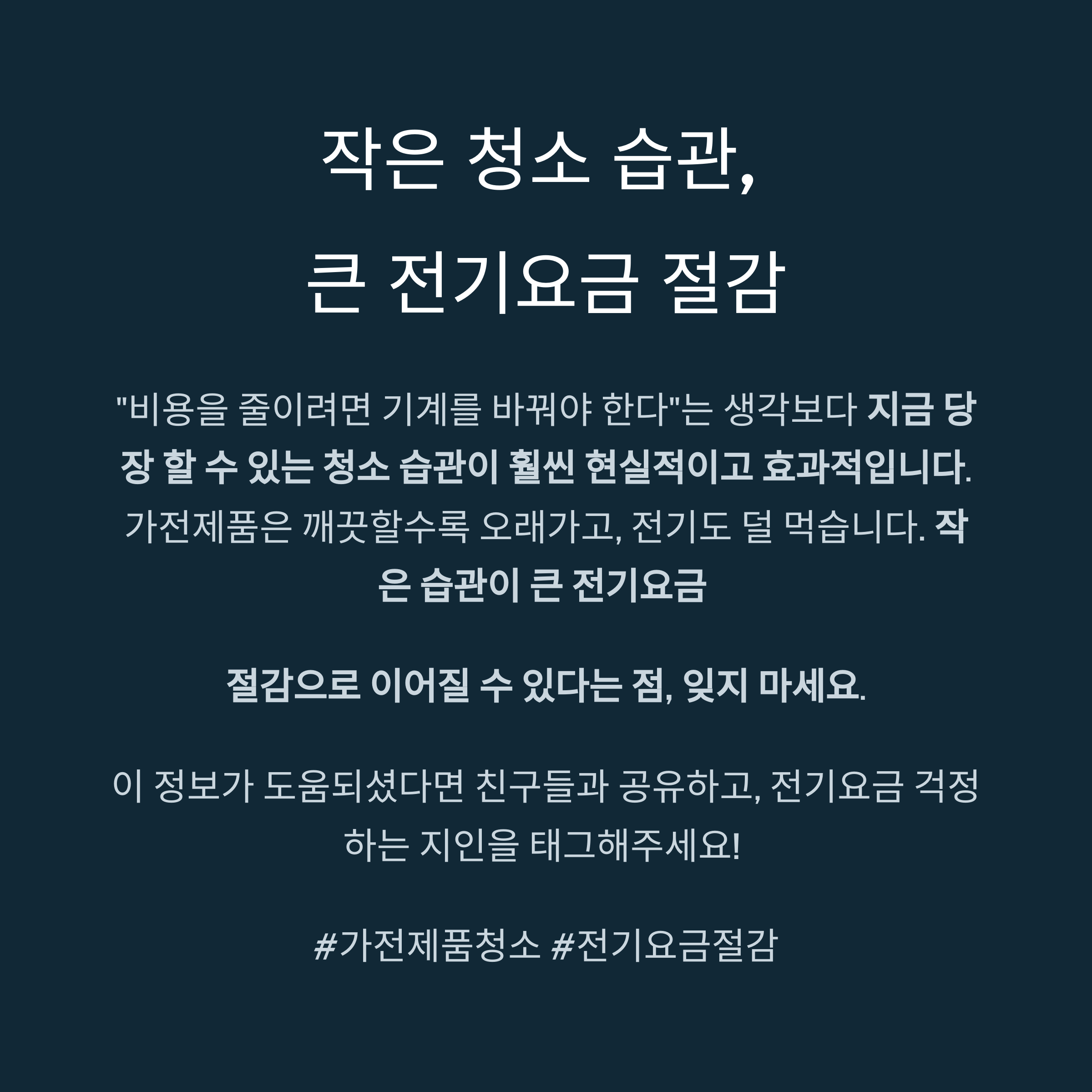 전기요금 절감, 청소 습관에서 시작됩니다