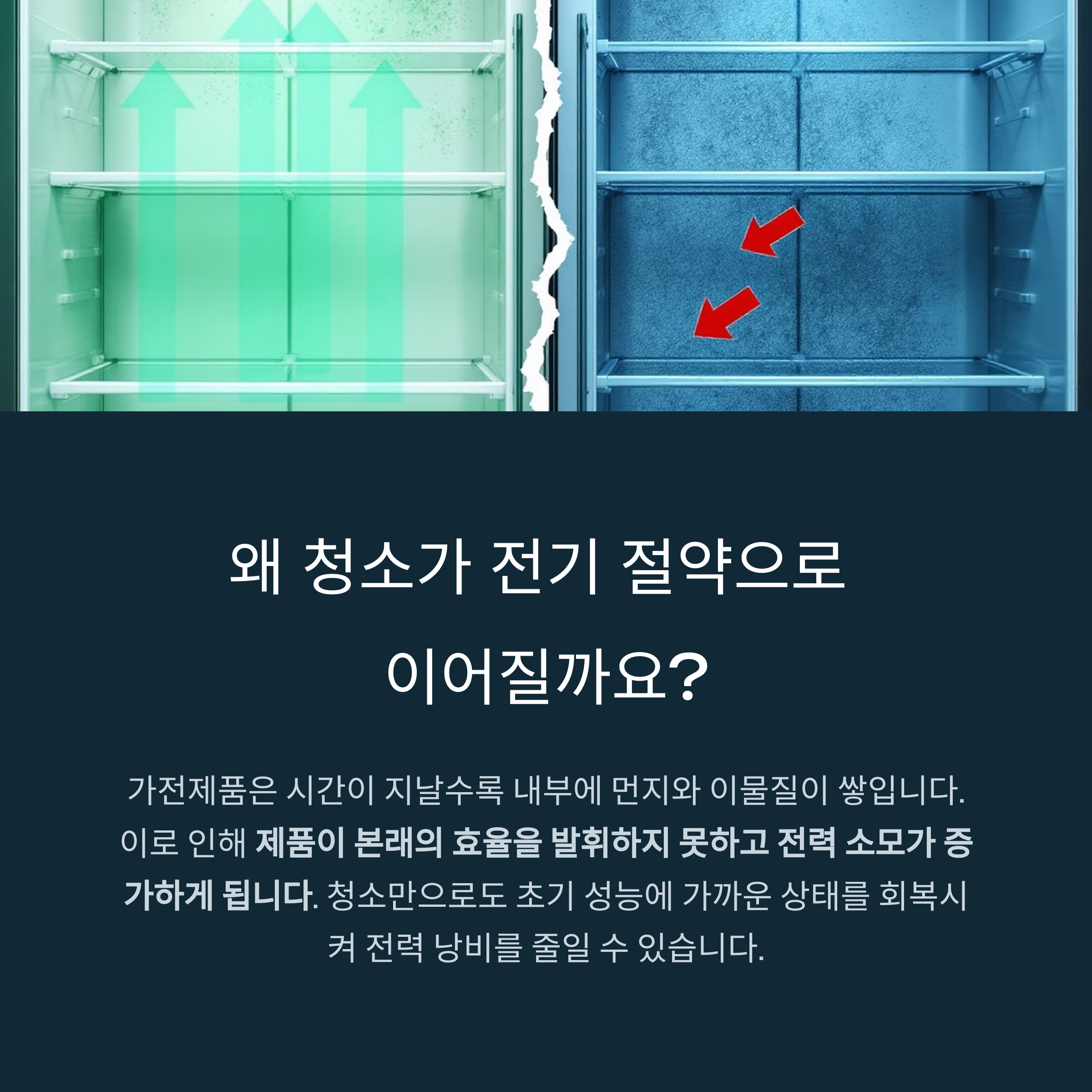 가전제품은 깨끗할수록 오래가고, 전기도 덜 먹습니다