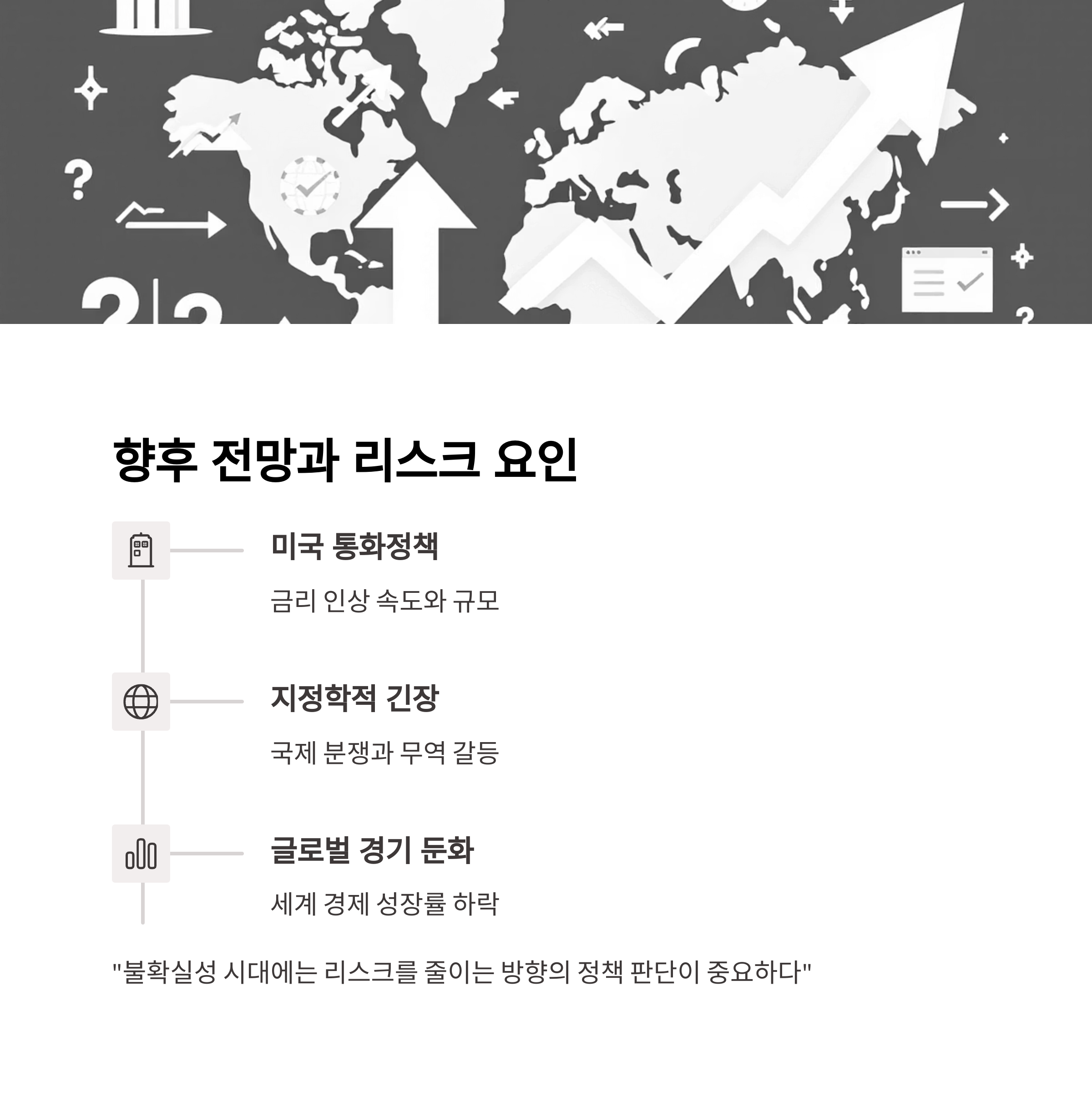 향후 미국의 통화정책, 지정학적 긴장, 글로벌 경기 둔화 여부 등이