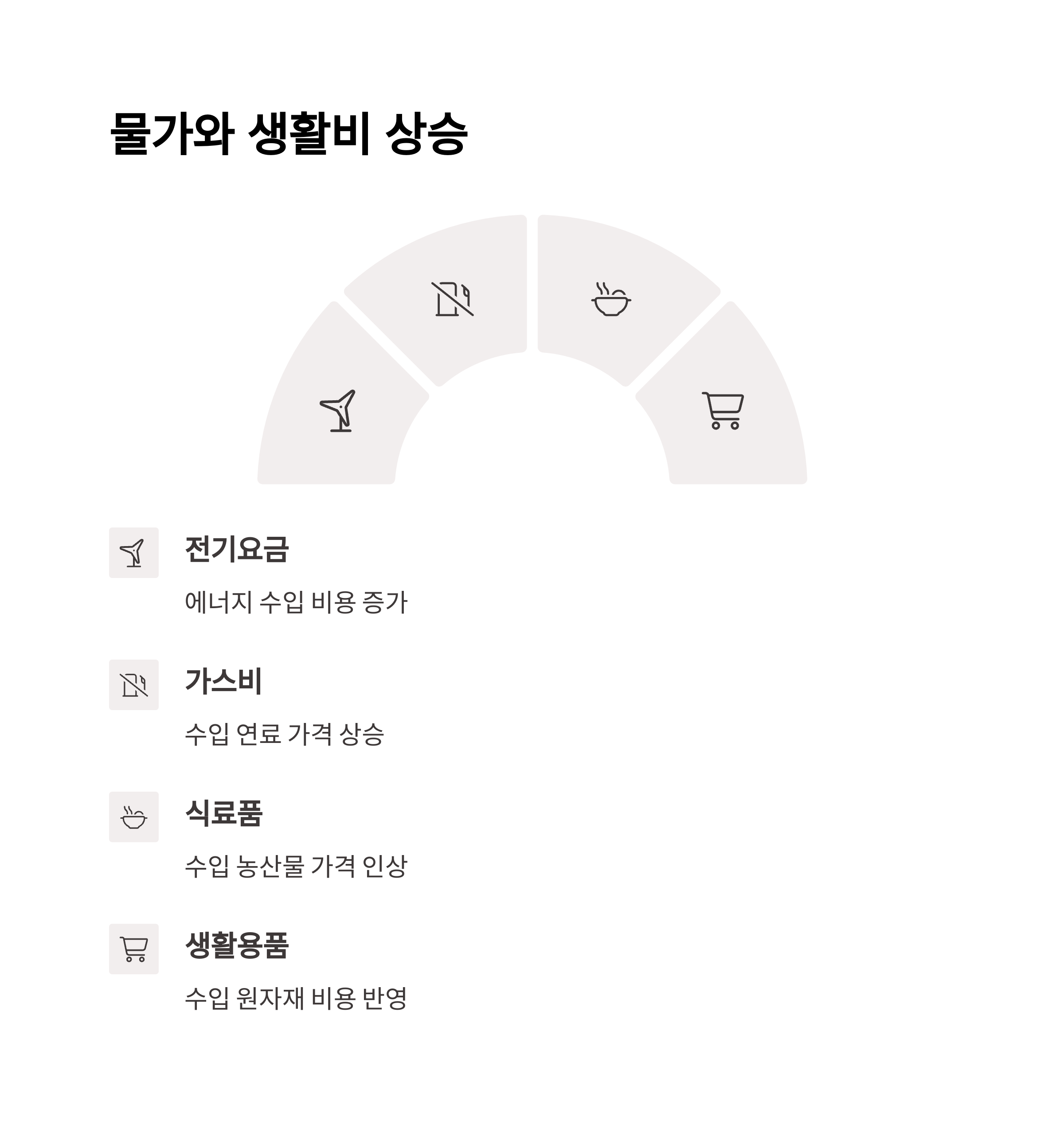 전기요금, 가스비, 식료품 가격 등에 연쇄적으로 반영됩니다