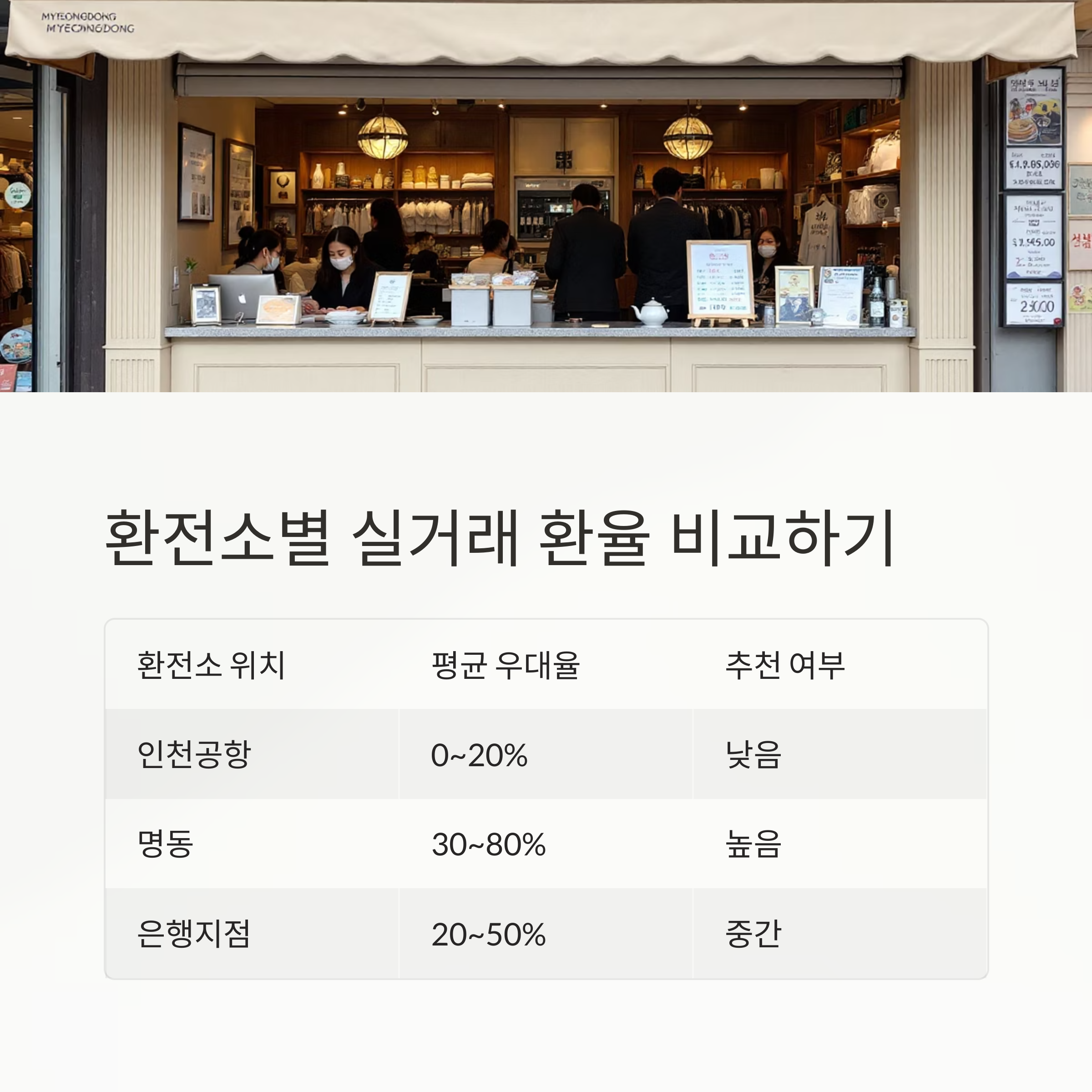 실제로 외화를 환전할 경우, 환전소마다 적용하는 실거래 환율이 다르므로