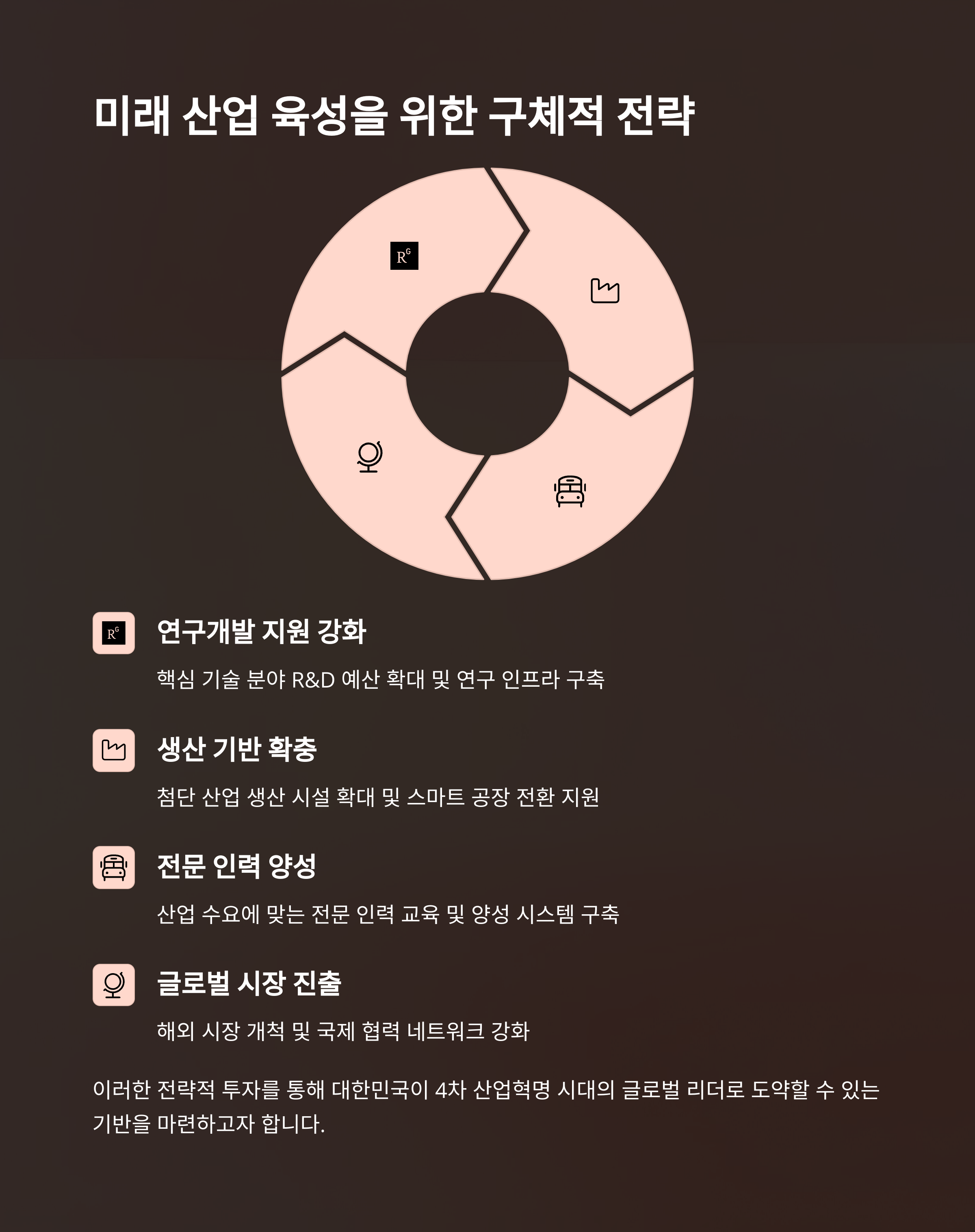 이재명 대통령은 K-배터리 산업 육성과 기후에너지부 신설 등을 통해 과학기술과 산업 발전을 도모하고자 합니다. 이를 통해 대한민국의 미래 성장동력을 확보하고자 합니다. (theminjoo.kr, kpanews.co.kr)