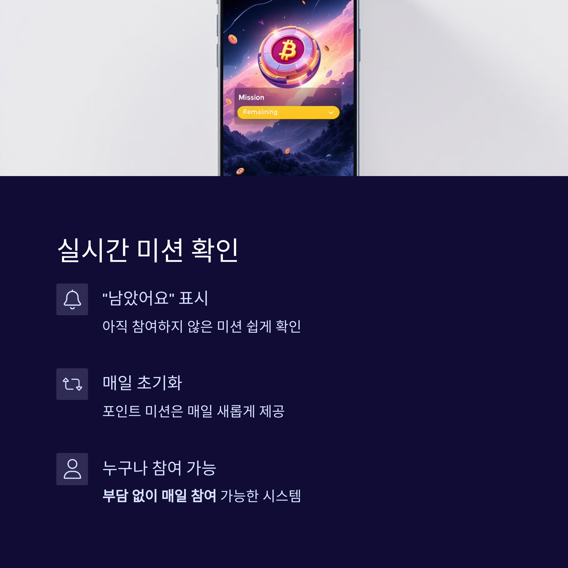 매일 짧게 참여하는 미션만으로 포인트가 계속 쌓입니다