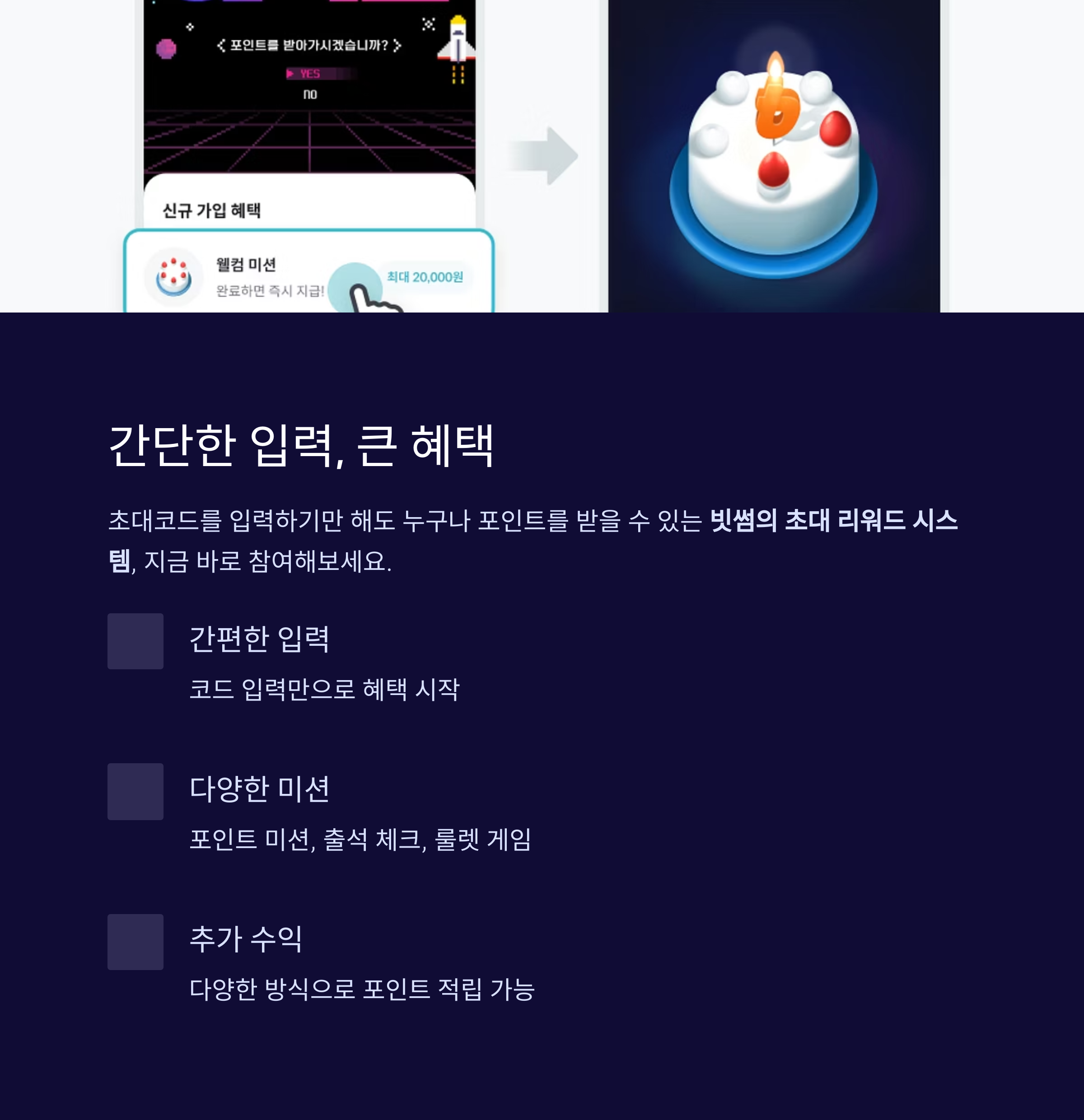 코드 입력 후 간단한 미션만 완료해도 양쪽 모두 포인트 리워드가 자동 적립됩니다.