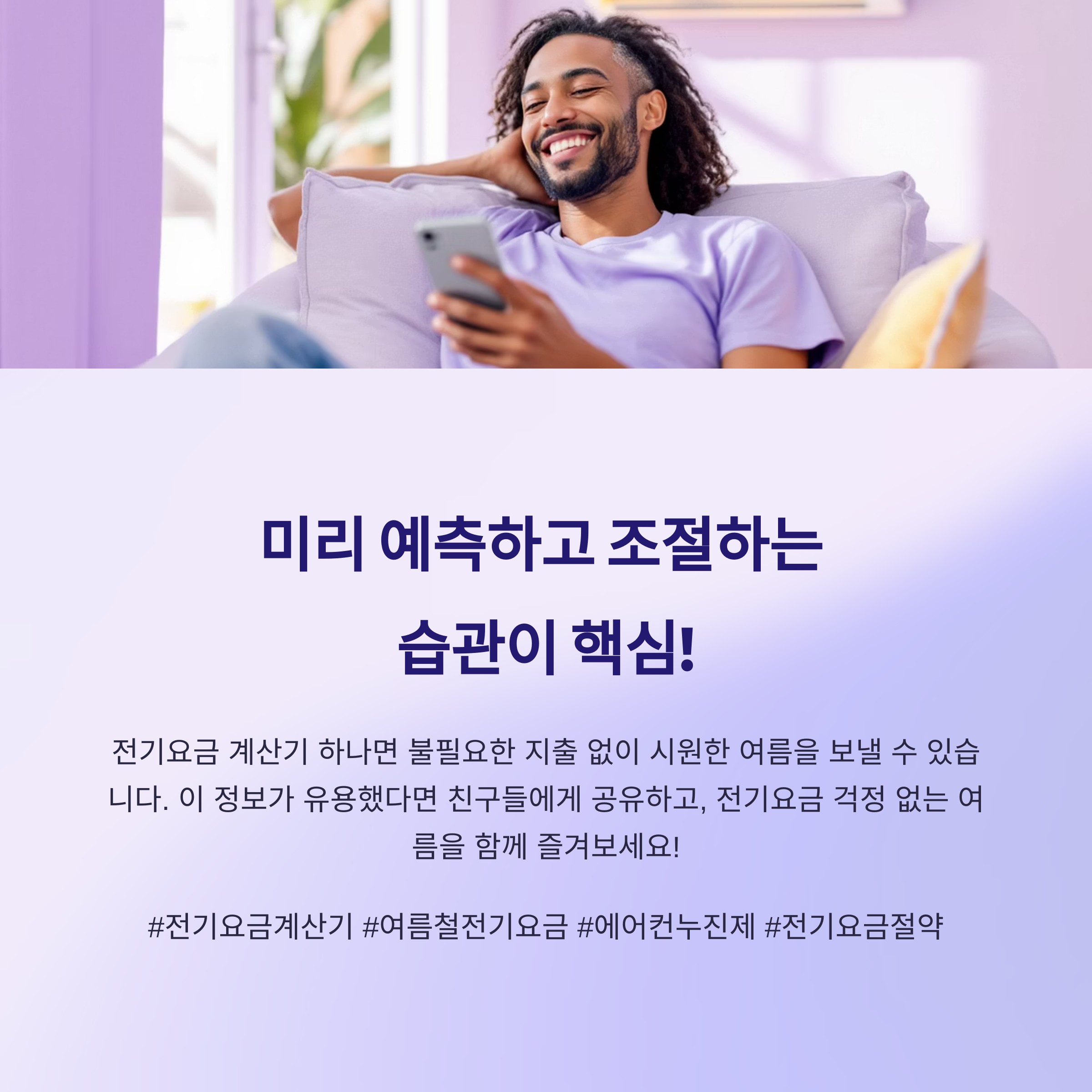 결론적으로, 여름철 전기요금은 미리 예측하고 조절하는 습관이 가장 중요합니다. 전기요금 계산기 하나면, 불필요한 지출 없이 시원한 여름을 보낼 수 있습니다.