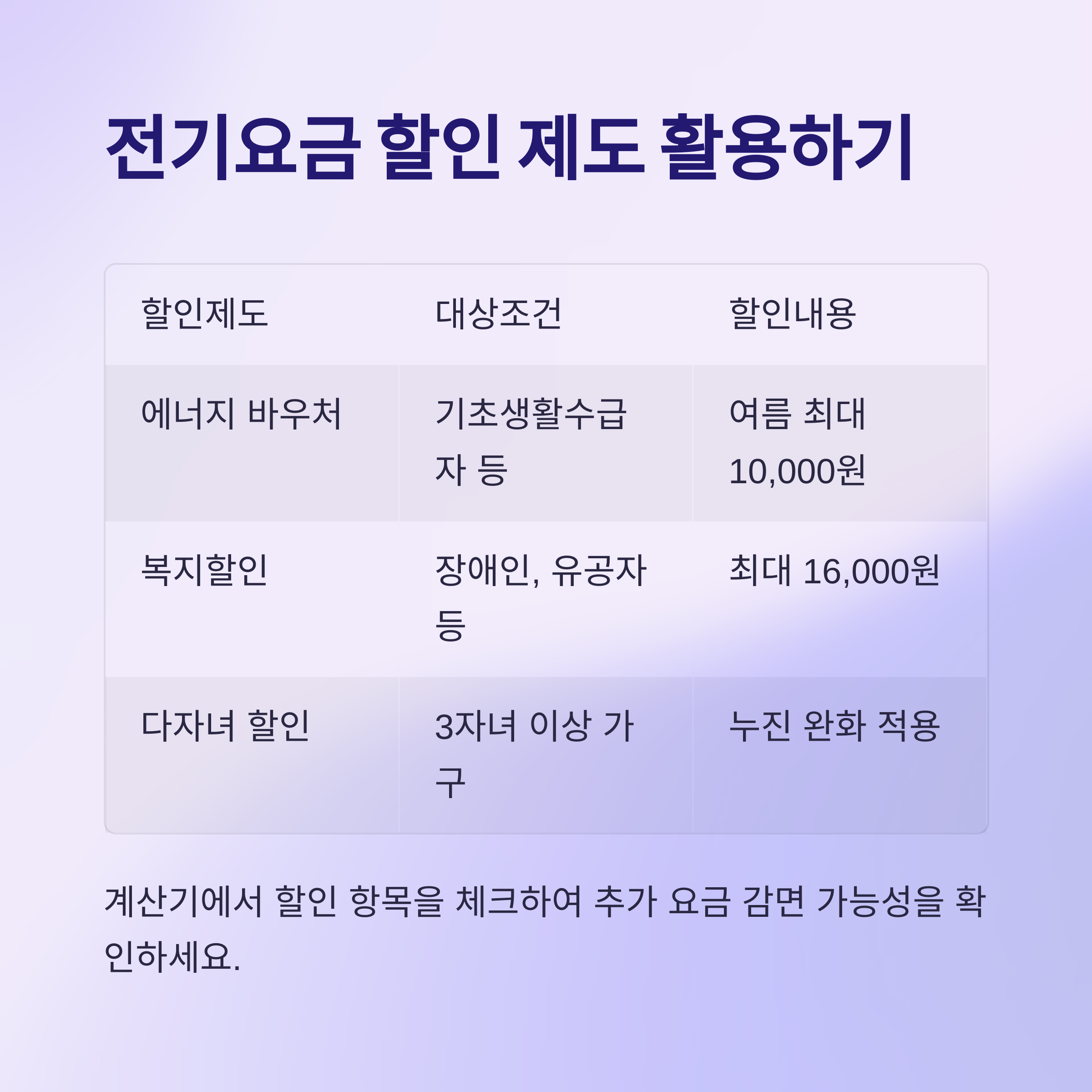 예를 들어, "여름철 에너지 바우처"나 "사회적 배려계층 할인" 항목을