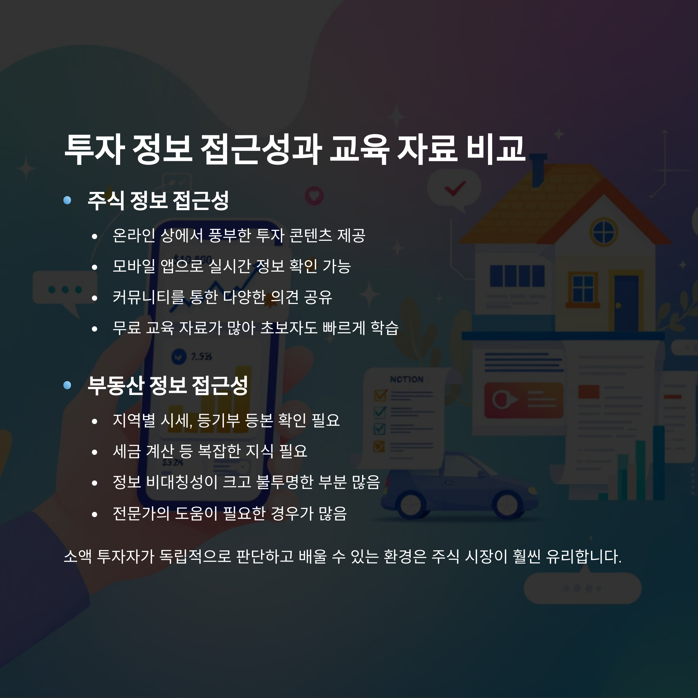 투자 정보 접근성과 교육 자료, 주식이 우세