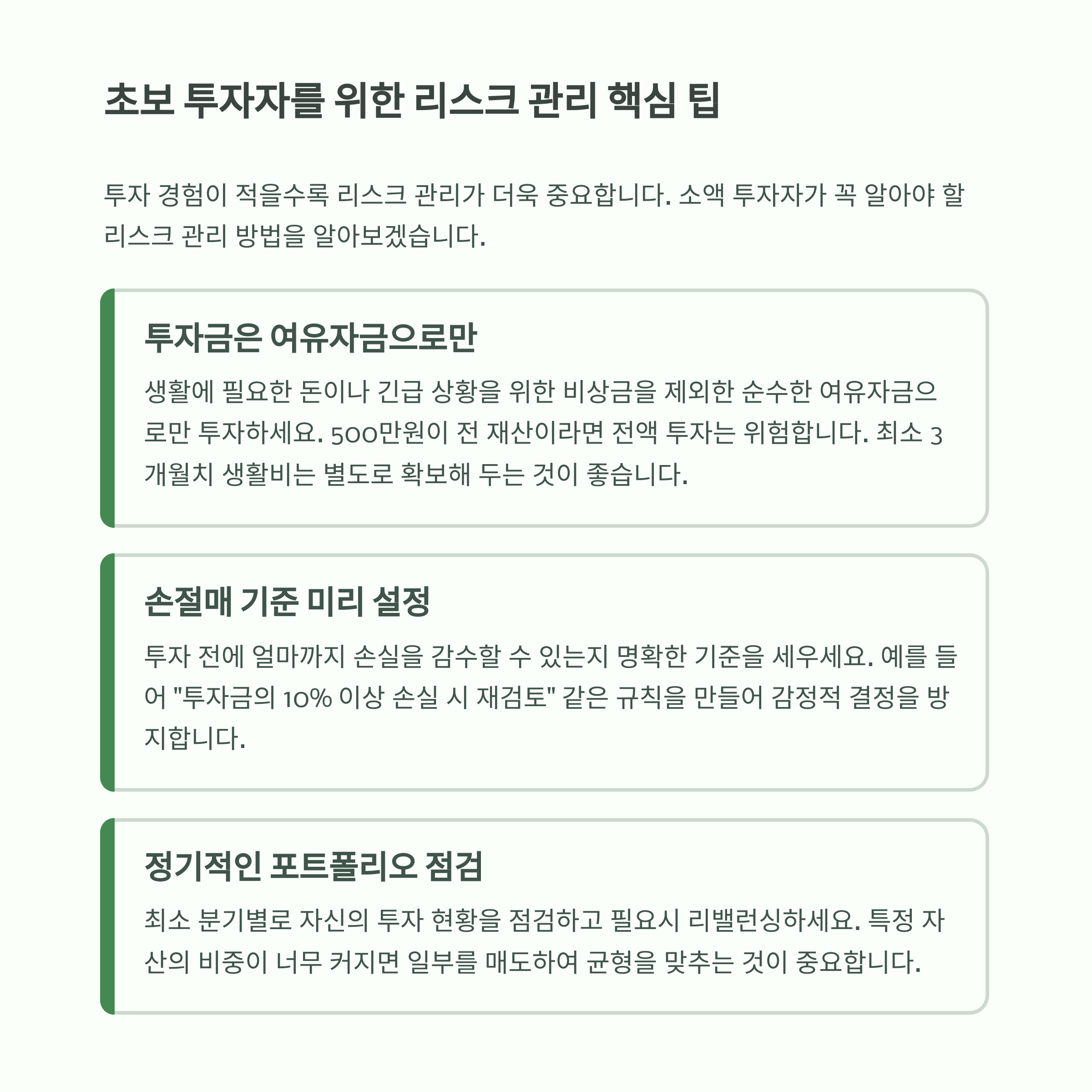 투자 금액이 적을수록 리스크 관리가 필수입니다.