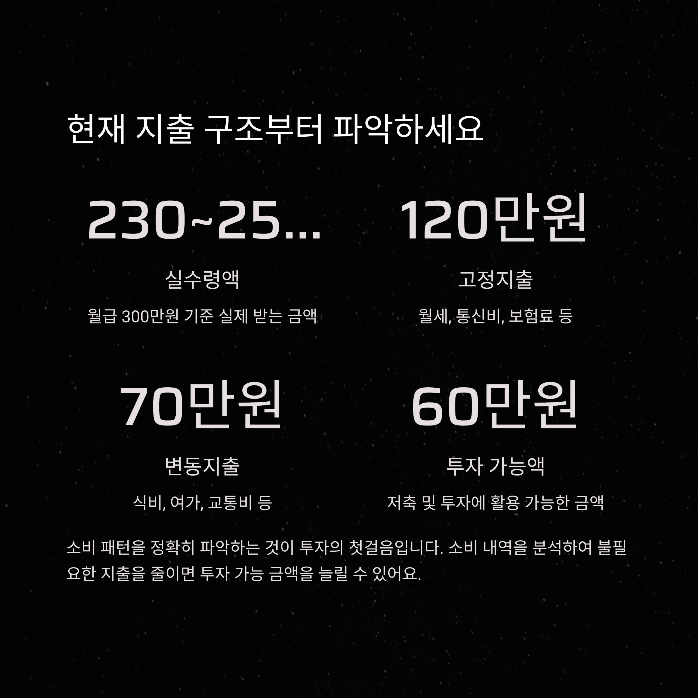 현재 지출 구조부터 파악하는 것이 핵심입니다
