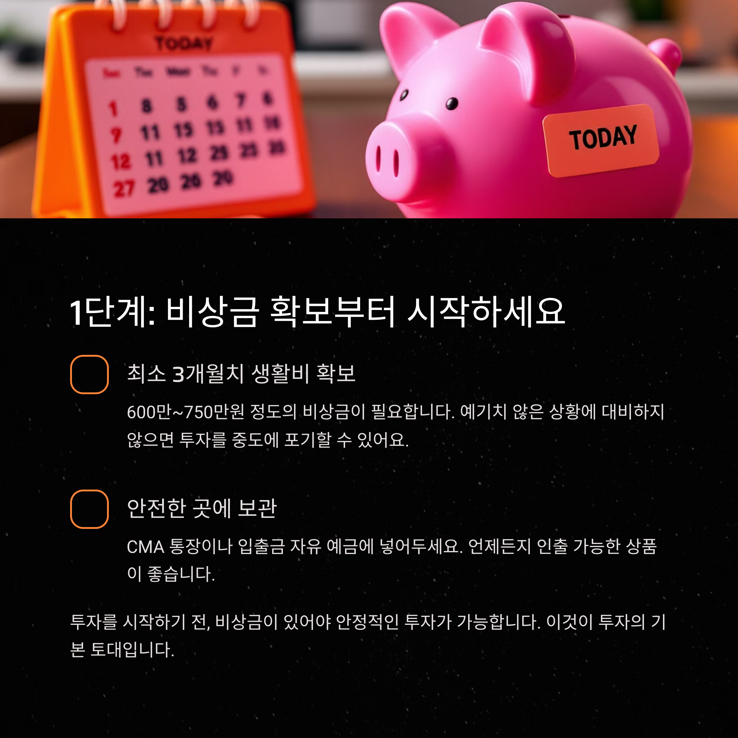 투자를 시작하기 전, 가장 먼저 준비해야 할 것은 비상금입니다.