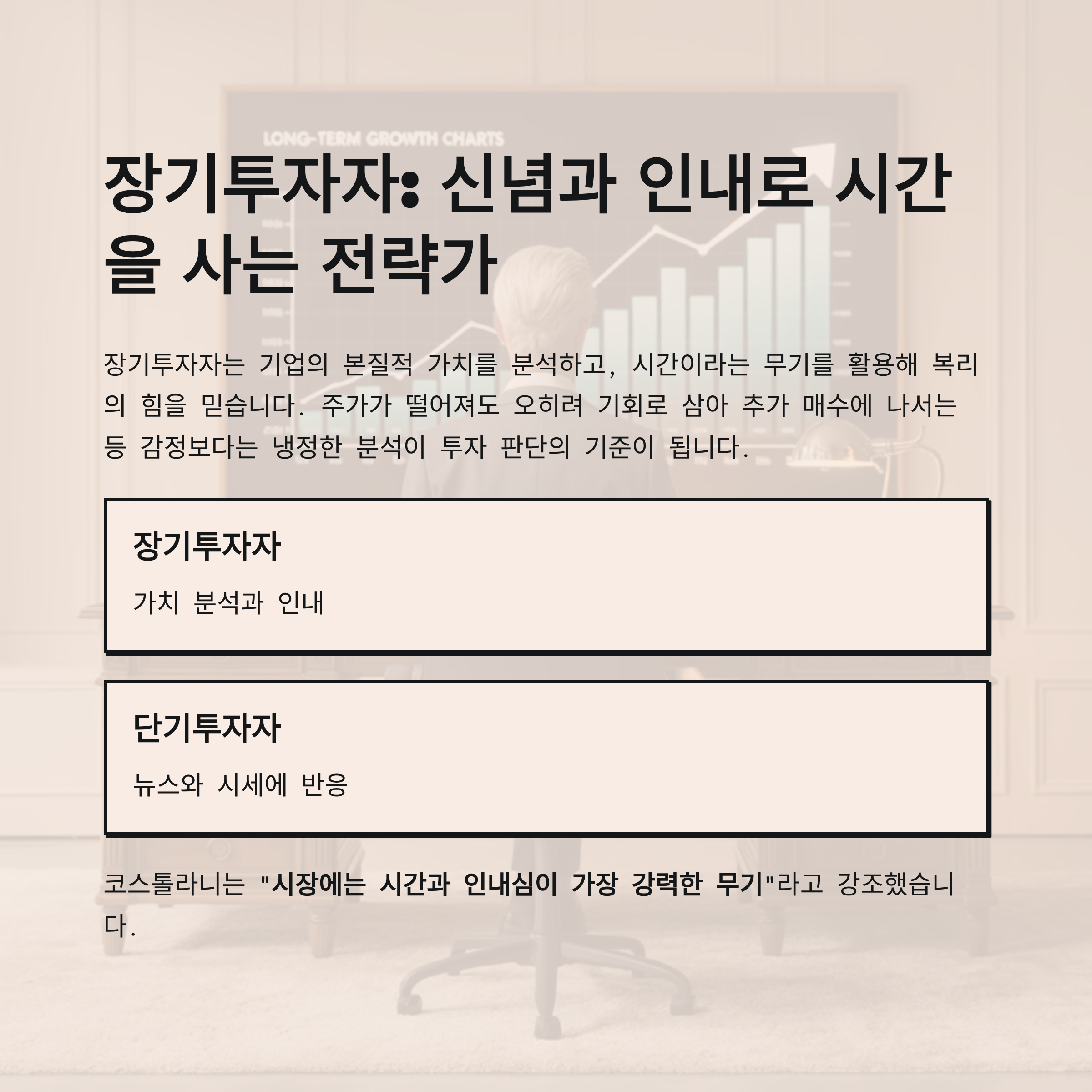 | 장기투자자 | 가치 중심 | 인내와 분석 중심 |