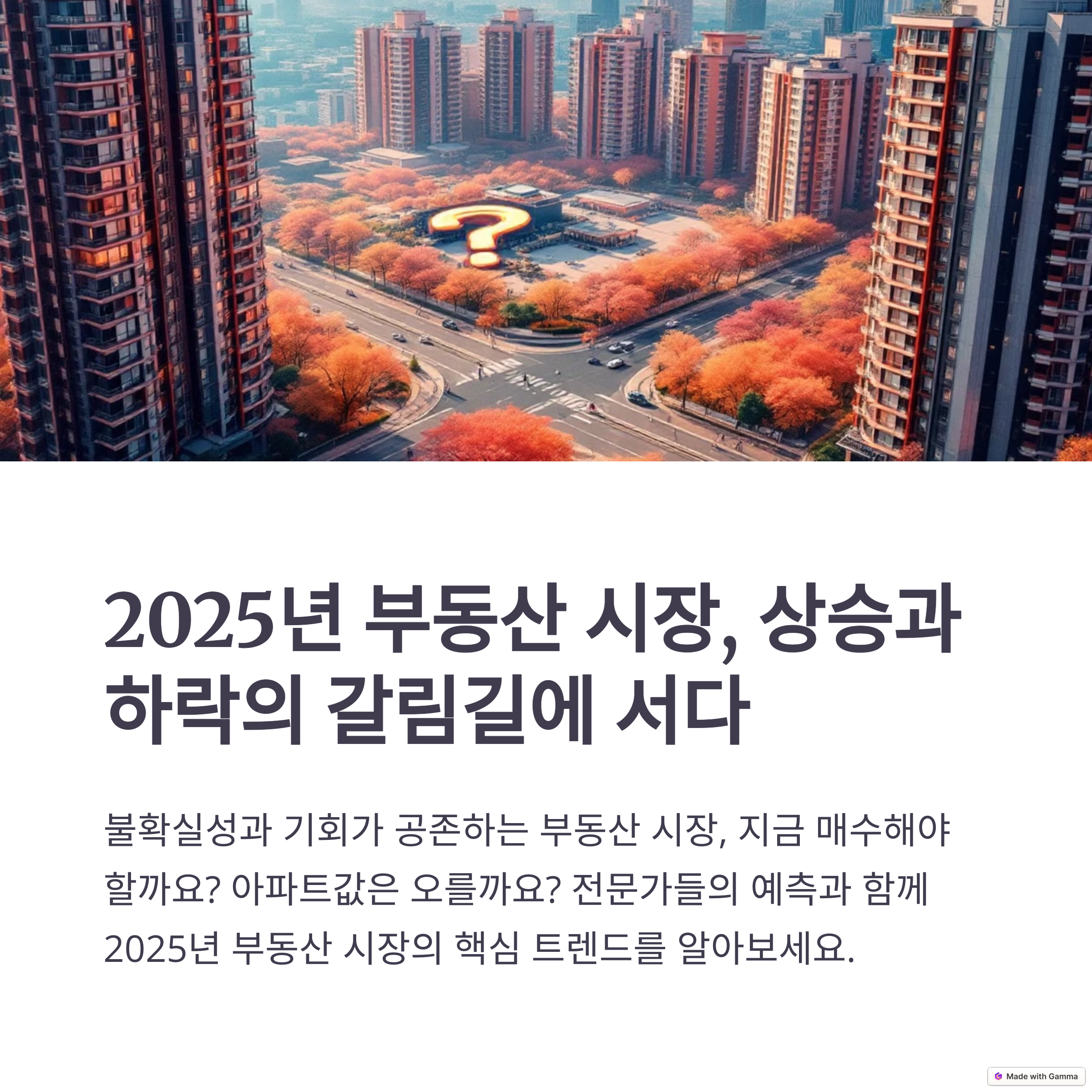 | 2025년 부동산 전망 키워드 | 금리 안정, 공급 부족, 정책 리스크 |