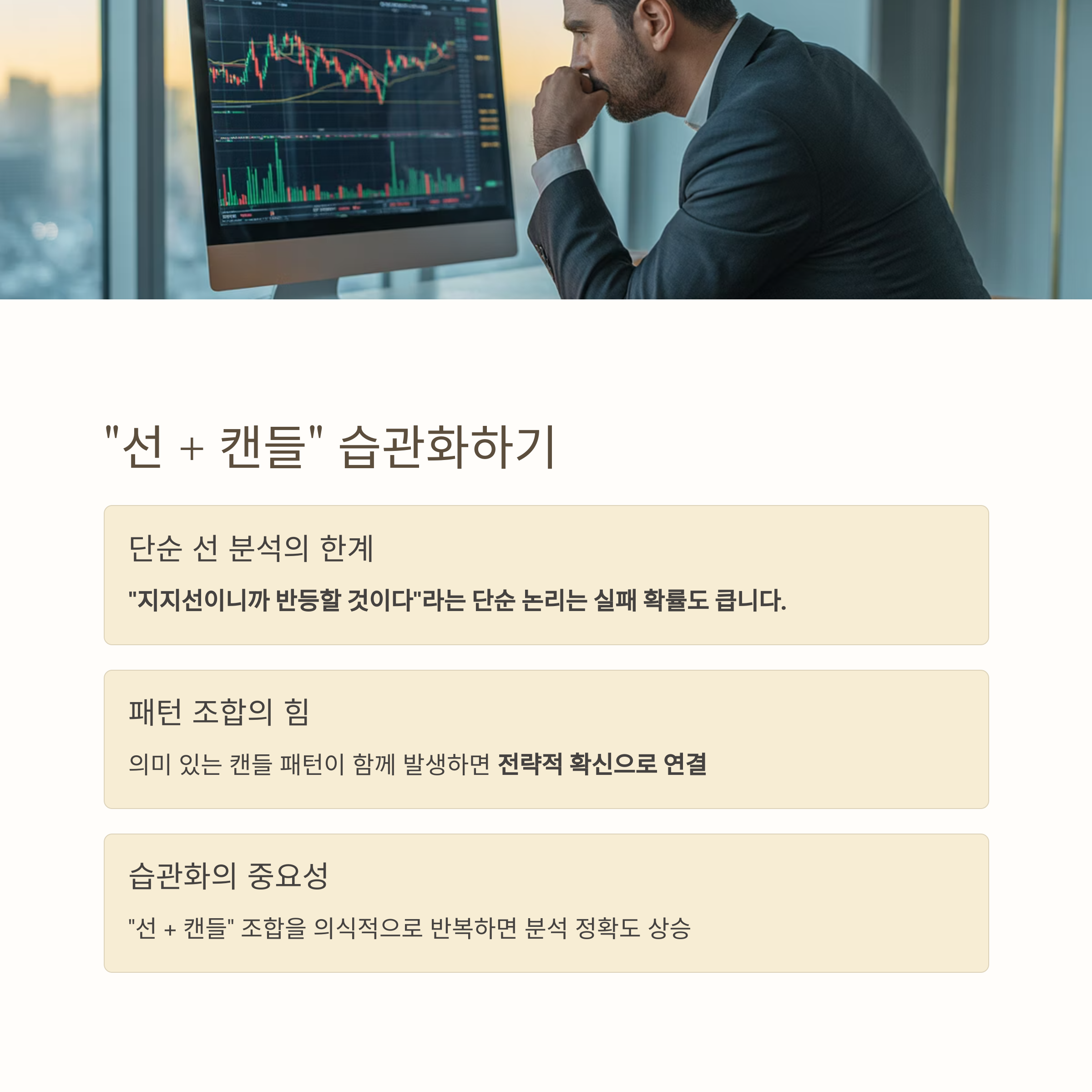 "선 + 캔들 = 확신"이라는 조합을 습관처럼 만들어가면