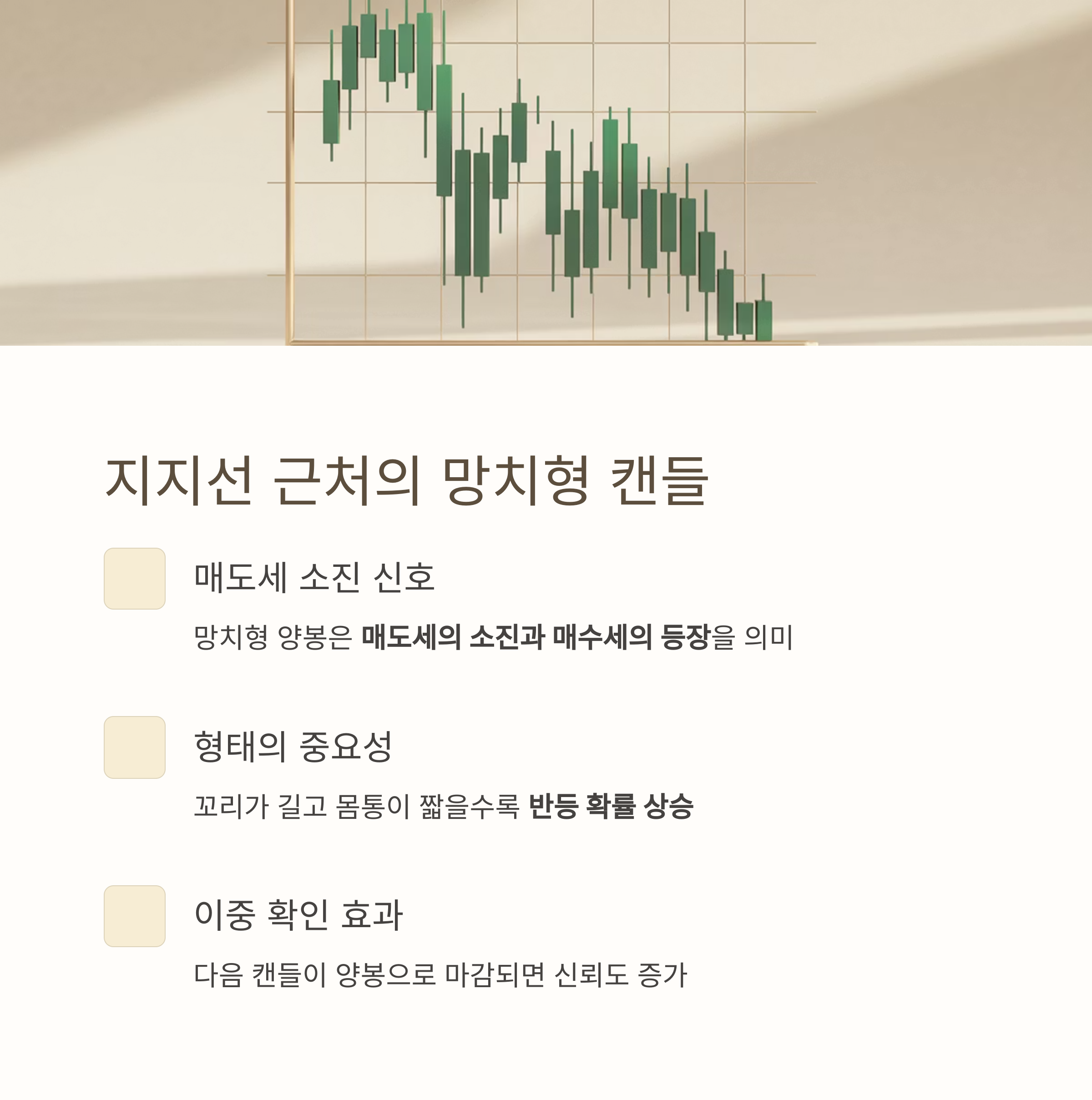 지지선 근처의 망치형 캔들, 반등의 강력한 신호