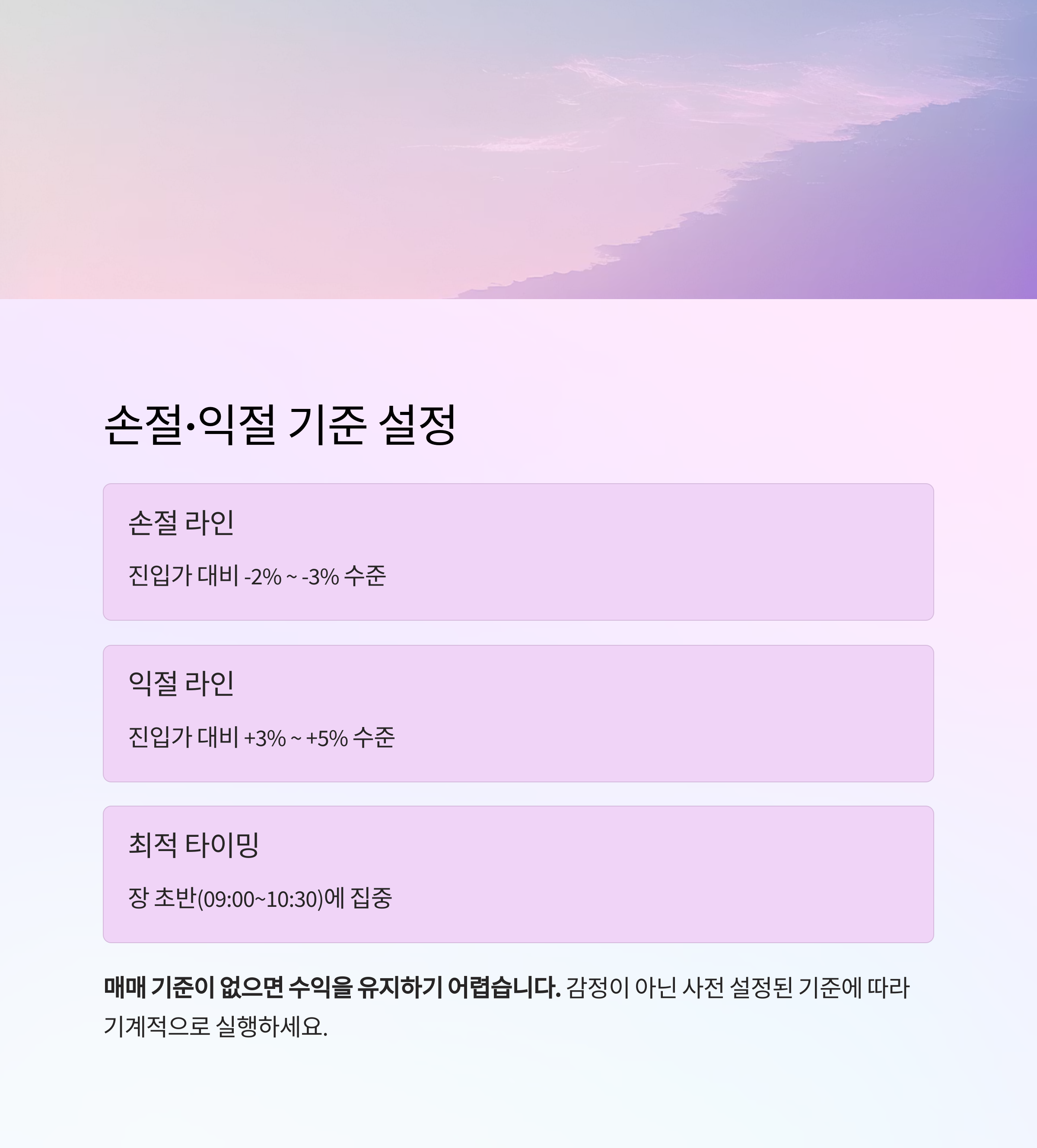 매매 기준이 없으면 수익을 유지하기 어렵습니다.