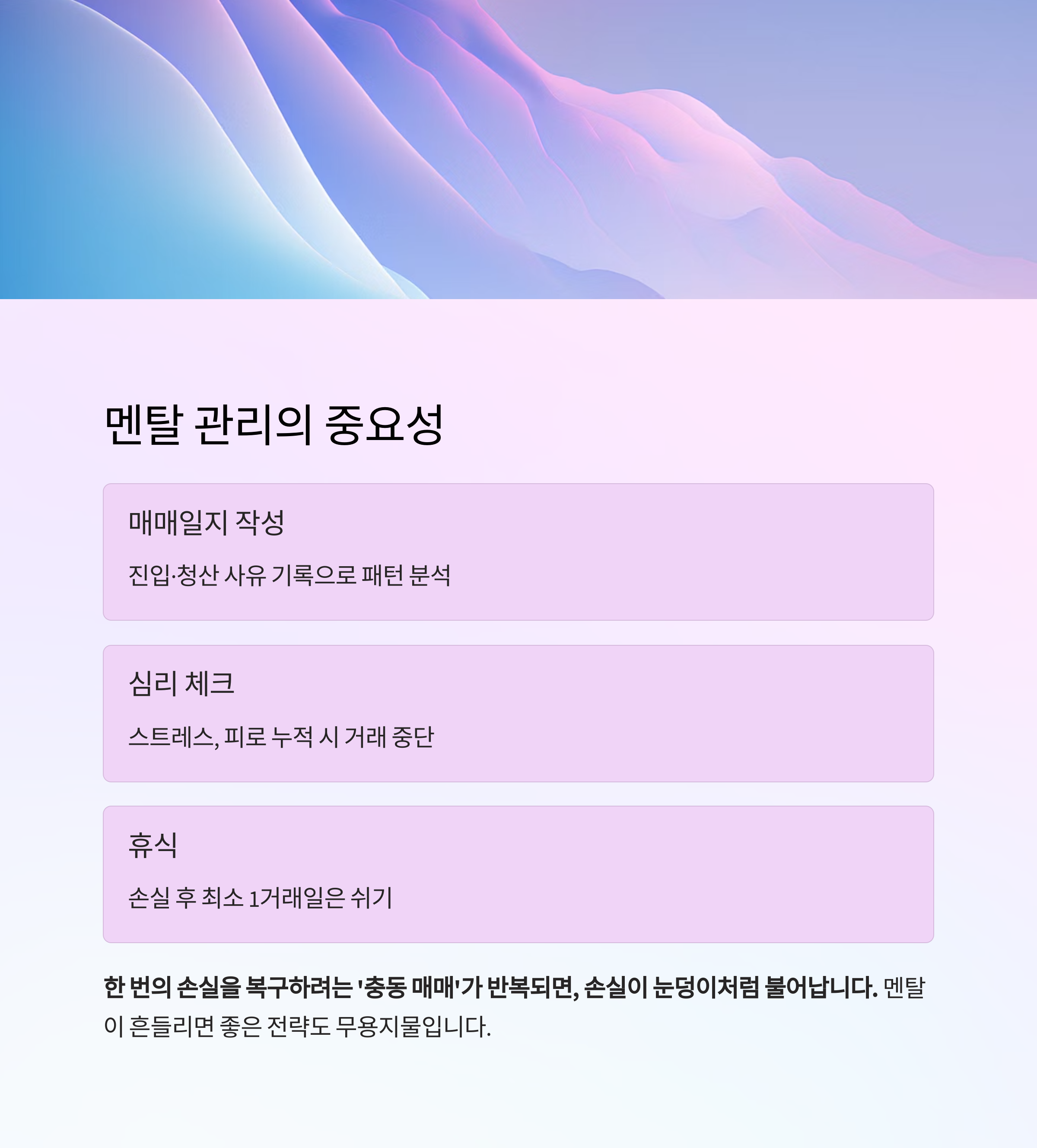 멘탈이 흔들리면, 좋은 전략도 무용지물이 됩니다.
