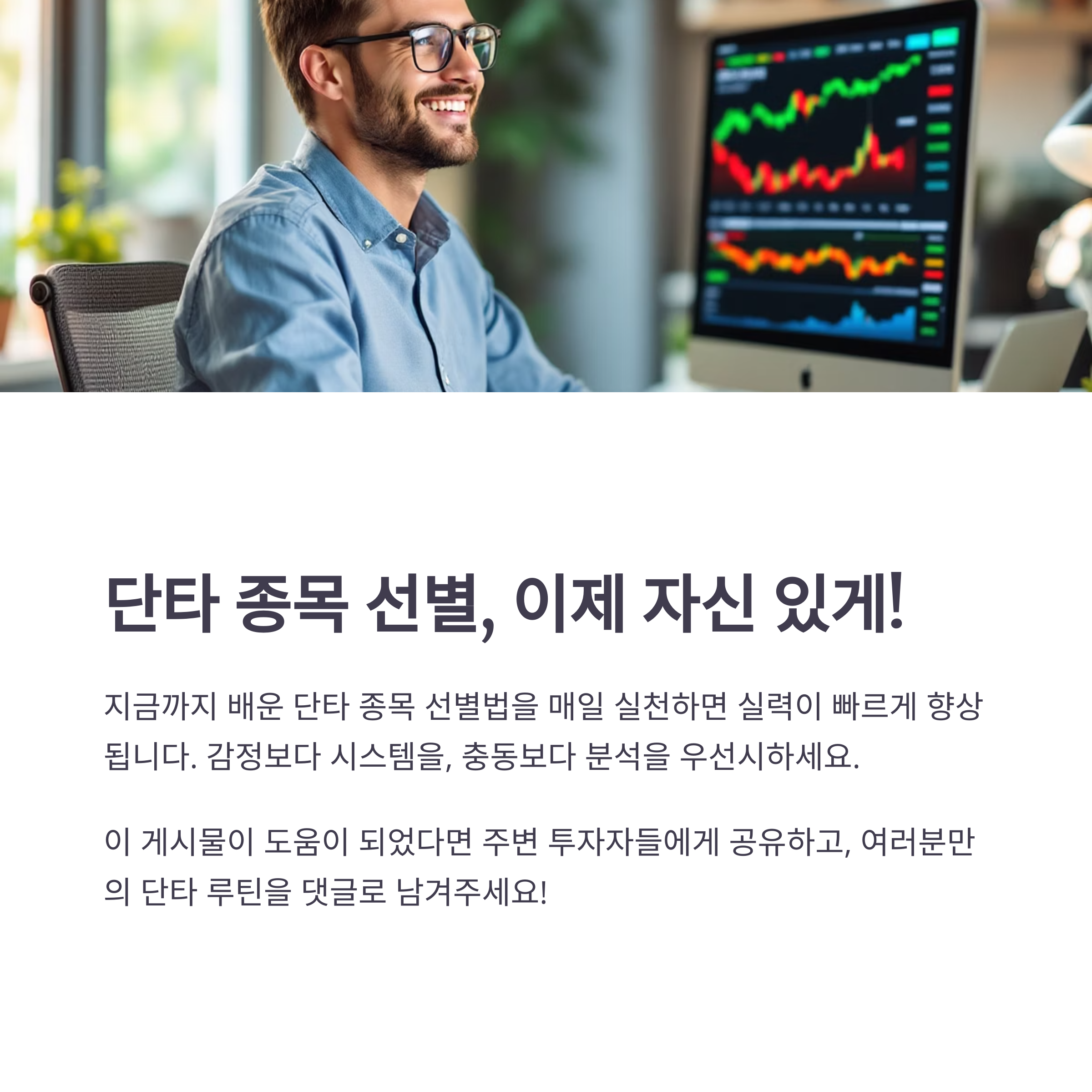 본 글에서는 실제 단타 고수들이 활용하는 종목 선별 기준과 매매 전략을 구체적으로 정리하였습니다.
