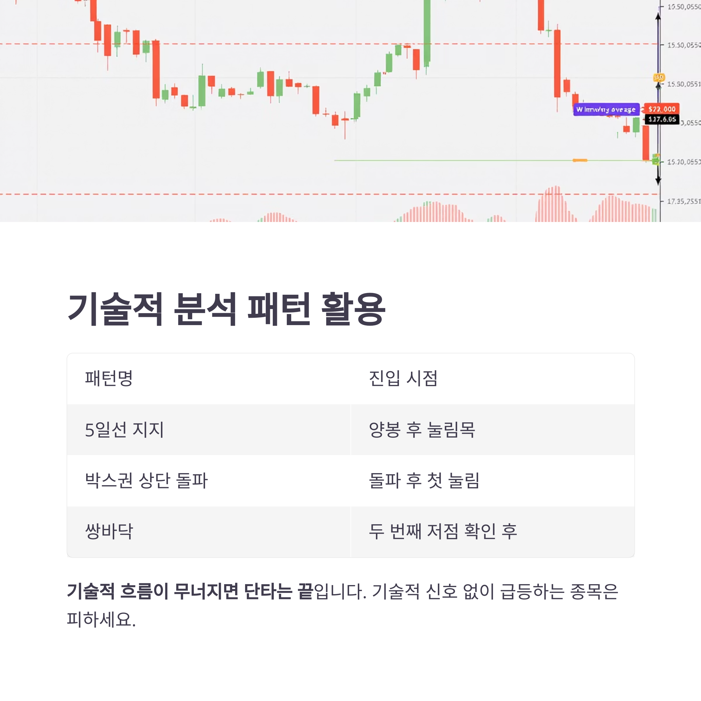 실적이나 재료도 중요하지만, 기술적 흐름이 무너지면 단타는 끝입니다.